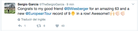 Uno de ellos fue Sergio García, el ganador del último torneo del circuito europeo, el Omega Dubai Desert, quien twitteó lo siguiente: