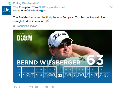 El golf en sí está sorprendido y no es para menos. Hoy en la segunda ronda del Maybank Championship, el nombre de “Bernd Wiesberger” está en boca de todos. Y es que el golfista profesional hizo 9 birdies seguidos, una hazaña que dejó pasmado a más de uno y a él como líder en solitario de la competencia con -12.